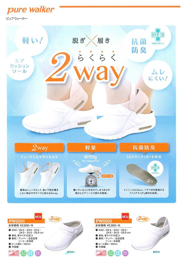 【ピュアウォーカー】脱ぎ履きが楽々の2wayタイプのナースシューズです。