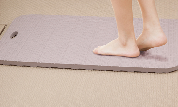 ●保温性の高いEVA樹脂が、ソフトな踏み心地であたたかく、お風呂場の足元のひんやり感を軽減します。