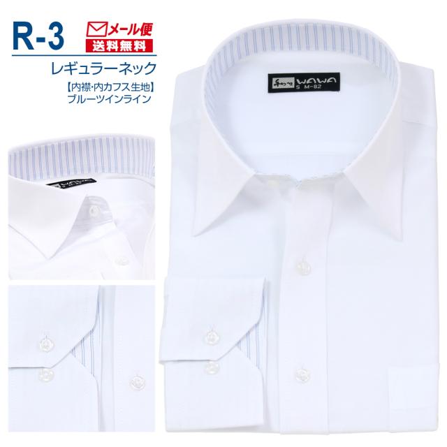 【メール便】 長袖 白無地 ワイシャツ メンズ レギュラーネック シャツ ホワイト 白 R-3 送料無料