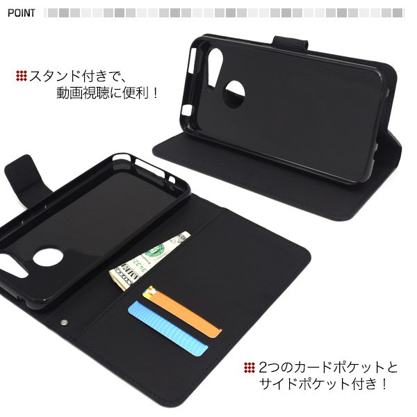 | 衝撃やキズなどからスマホを守ります。 また、内部はソフトケースなので着脱が簡単です。 背面を折り返すとスタンドとして使用できるので、動画視聴に便利です。 落下防止に便利なストラップとストラップホール付きです。 横開きタイプなので、手帳のように使うことができます。 また、内側に2つのカードポケットとサイドポケットが付いています。 ※スマートフォンは付属しません。 ※ライセンス商品ではありません ※カードは付属しません。 ※GRATINA KYV48へ装着した場合は、Android One S6で使用する右下のストラップホール部分が開いたままの仕様になります。また、左上にホールがないため、ケースを付けたままストラップの装着はできません。 | ||||||||||||||