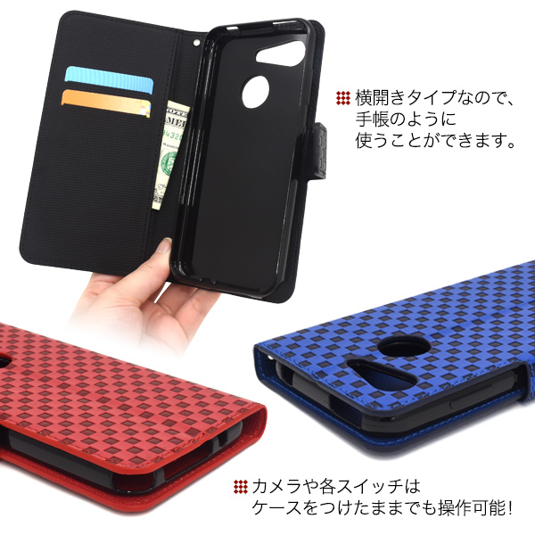 スマホケース Android One S6 GRATINA KYV48用 市松模様デザイン 手帳型ケース 横開き チェック柄 市松柄 アンドロイドワンs6 au グラティーナ kyv48