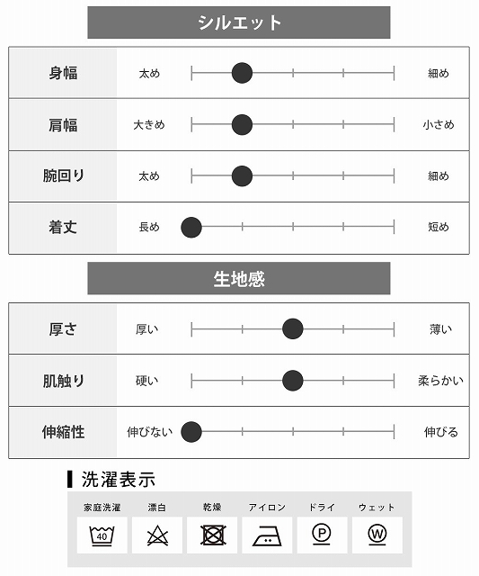 | サイズ | 着丈 | 身幅 | 肩幅 | 袖丈 |