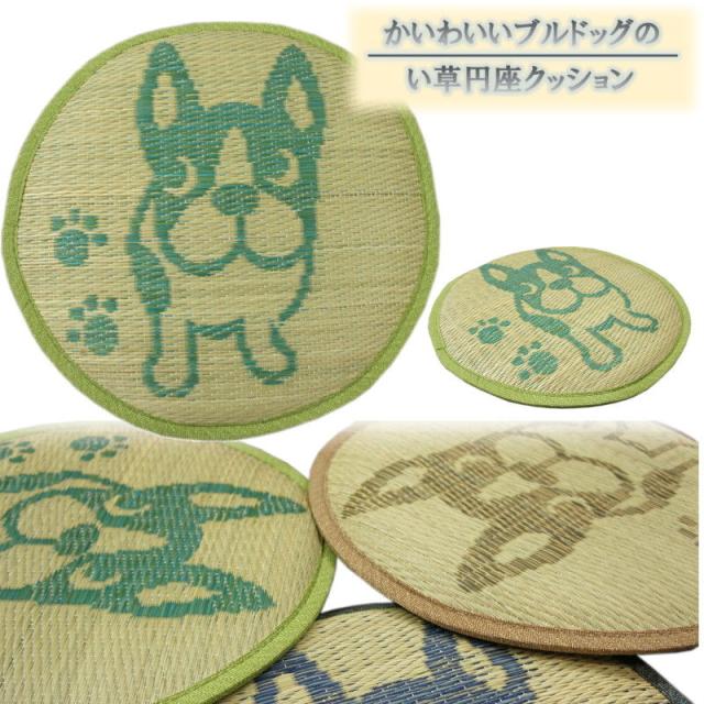 40cmR い草円座クッション「ブルドッグ」グリーン色 【夏用クッション】