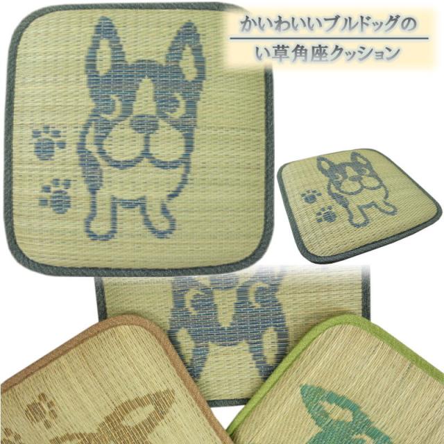 40x40cm い草角座クッション「ブルドッグ」ブルー色 【夏用クッション】