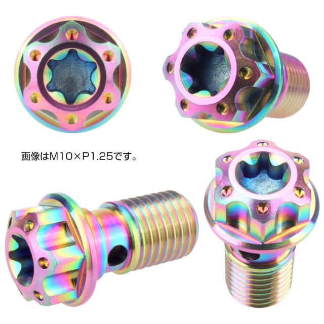 64チタン製 バンジョーボルト シングル M10 P1.25 トルクス穴 レインボー ライトカラー JA613