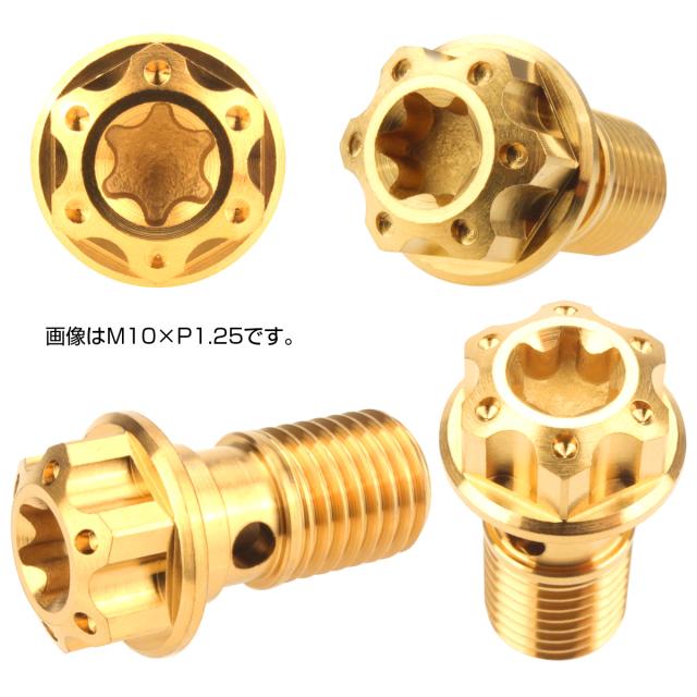 64チタン製 バンジョーボルト シングル M10 P1.25 トルクス穴 ゴールド JA614