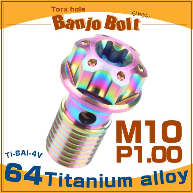 64チタン製 バンジョーボルト シングル M10 P1.00 トルクス穴 レインボー ライトカラー JA609