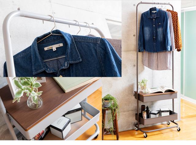 ハンガー&バスケットで洋服から小物までスマートに整理整頓。