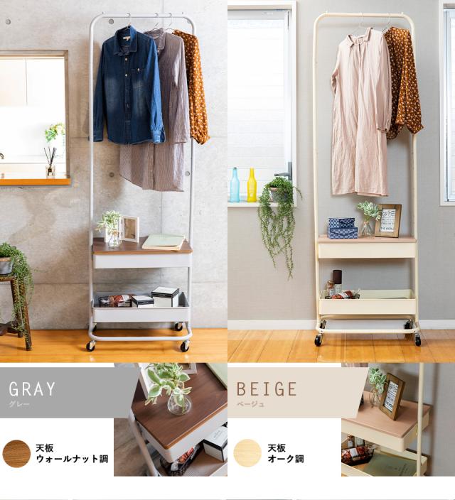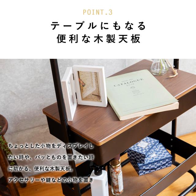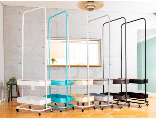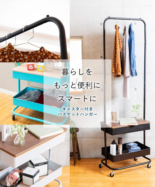 ★クーポンあり★ ハンガーラックハンガー ラック 2段 バスケット 小物収納 木天板 安い キッチン ランドリー キャスター付き バスケットハンガー BHYO-6C キャスター 衣類ハンガー 衣類収納 整理整頓 移動