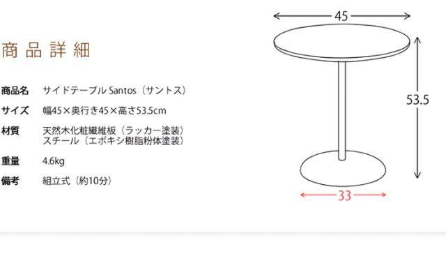 【丸型テーブル】直径45cm サイドテーブル Santos(サントス) 2色対応 ST-019 テーブル 北欧 木製 ナチュラル シンプル カフェ風 おしゃれ