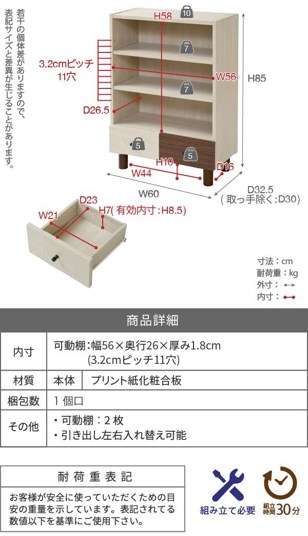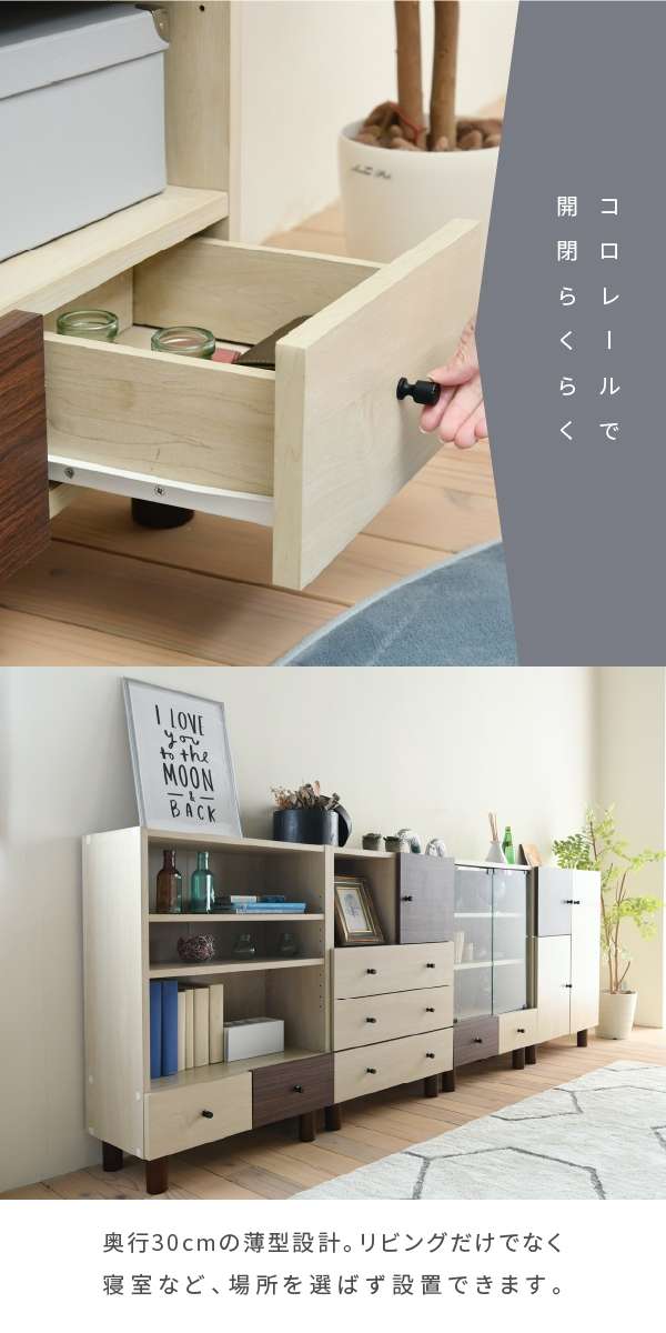 ツートンボックスシリーズ チェスト オープンラック 幅60 奥行30 木製 おしゃれ リビング 収納 サイドボード リビングボード 組み合わせ家具 引き出し 本棚 衣類収納