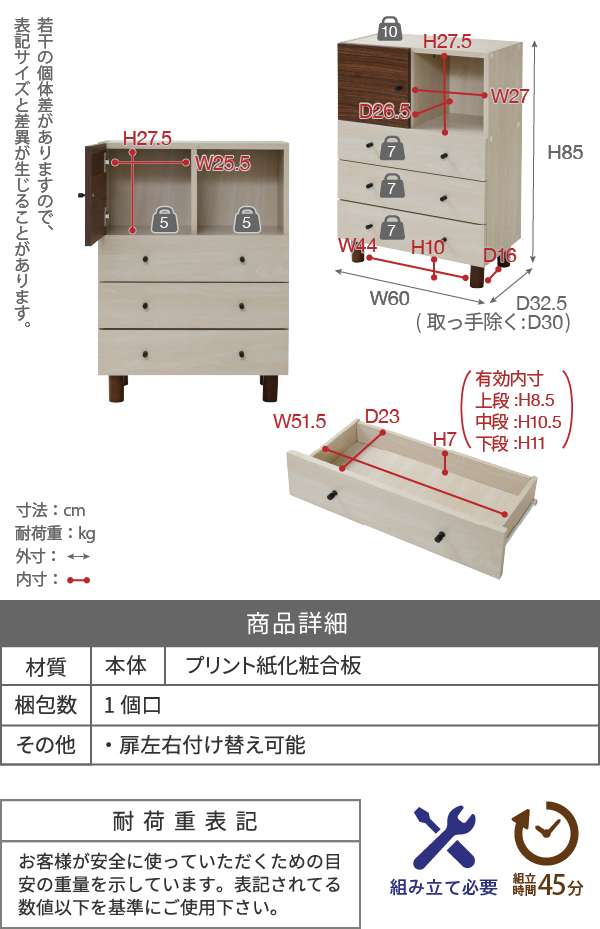 サイズ/幅60奥行32.5高さ85cm