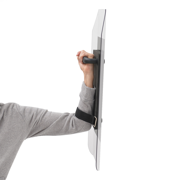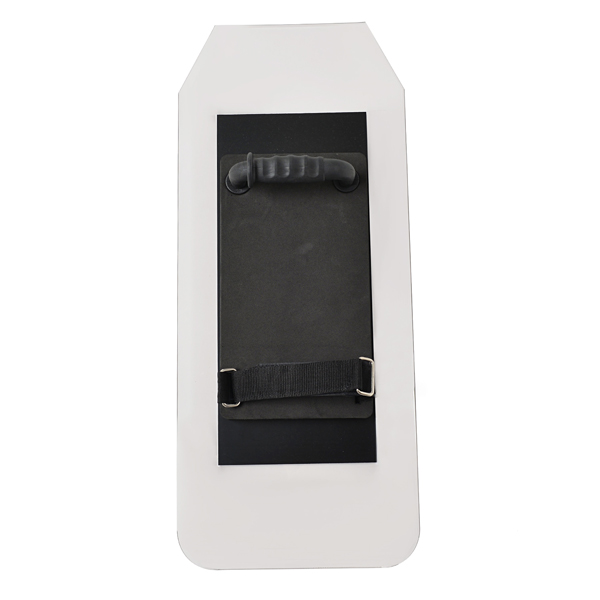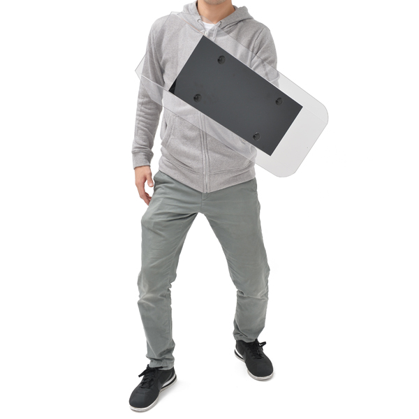 ◎防御一辺倒の盾から攻防一体を可能にしました。 ◎肘とハンドルグリップの2点支持で片手でもしっかりと保持できます。 ◎半身に構えて片手で上半身をカバーし、もう片方の手に警棒等も保持できます。 ◎右利きでも左利きでも扱えるグリップを採用。 ◎シールド重量は約1.2kgと軽量で取り扱いが簡単。 ◎十分な強度を誇る3.5mm厚のポリカーボネート製。 ◎シールド内側には衝撃緩衝材が貼られています。