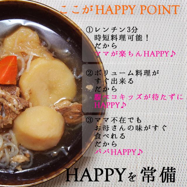 ■食べ方 袋のまま熱湯に入れ、5分温める。または、耐熱性容器に移し替え ラップをかけてから電子レンジで 3分程度あたためる。