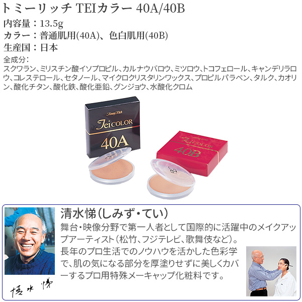 Teiカラー トミーリッチ TEIカラー 40A/B‐マスクにつきにくい ファンデーション 40代 50代 敏感肌 ウォータープルーフ プロ仕様 ツヤ肌 パウダーファンデーション ハイリッチ