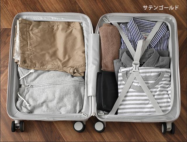 フロントポケット・キャスターストップ・静音キャスターなど、スーツケースで欲しかった機能が全部入っているエアレイヤー。