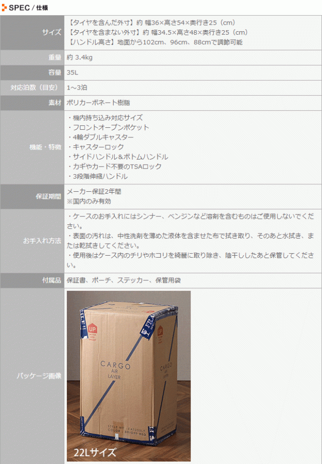 スーツケース キャリーケース キャリーバッグ CARGO エアレイヤー AIRLAYER ハードジップキャリー 35L m 大容量 ダブルキャスター フロントポケット フロントオープン キャスター ストッパー おしゃれ エアーレイヤー