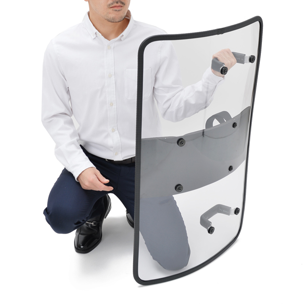MG501Sはアーマージャパンのオリジナル商品です。4mm厚のポリカーボネートシールドは金属バット・刃物・火炎瓶に対しても十分な強度を備えています。