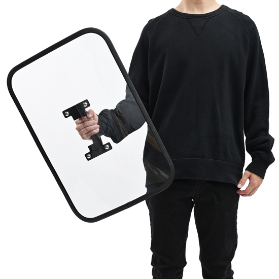 シングルグリップタイプは片手でシールドを保持する為、もう片方の 手で警棒、警杖、スタンガン、催涙スプレーなどを保持できます。