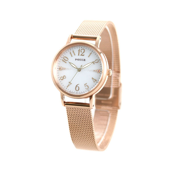 正規品 7年保証キャンペーン 送料無料 シチズン ウィッカ ソーラーテック ソーラー レディース 腕時計 KP5-166-13 CITIZEN wicca アナログ ラウンド シルバー×ピンクゴールド ◆ウィッカは旬のカワイイがいっぱい詰まった腕時計ブランドです。幅広い年齢層の方に支持されており、就活やビジネスシーンなどにも人気です。 大きめフェイスにメッシュバンドを組み合わせた、透明感あるシンプルなデザインが特徴。12時と6時以外を淡い色にすることで、全体の抜け感を表現しています。文字板の中央部分から広がるパターンは、きらめく光をイメージ。3時と9時の位置に、光の粒をイメージした植字をあしらい、アクセントとしてクリスタルをセッティング。さりげないおしゃれ、可愛さを演出しています。プレゼントにもおすすめです。 発売日:20年2月発売