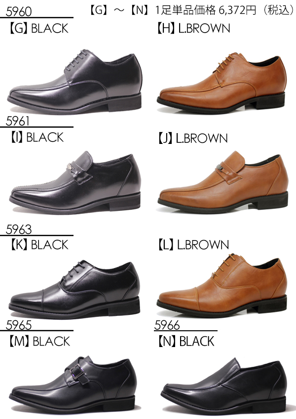 ビジネスシューズ 黒 シークレットシューズ 6cmUP ヒールアップ レザー ブラック No.5890-5892 5960-5963 5965-5966