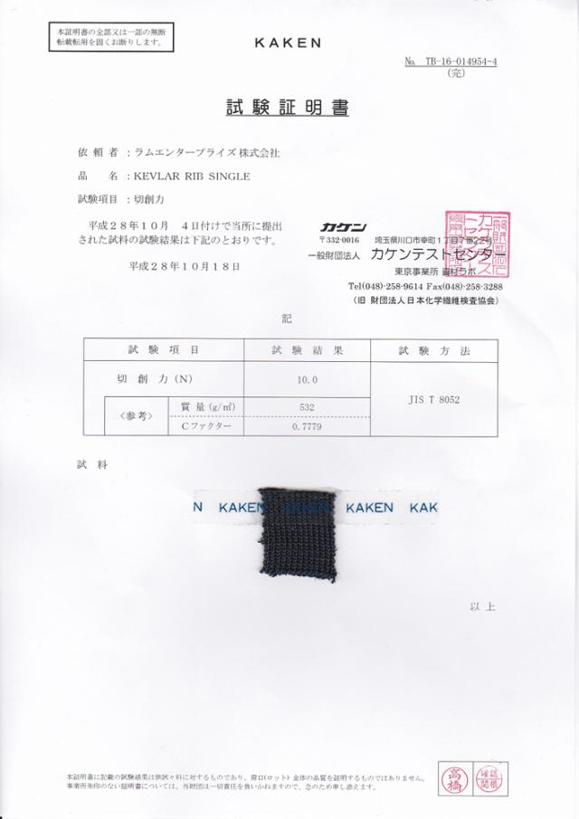 切創力:10.0N (JIS T 8052) カケンテストセンター