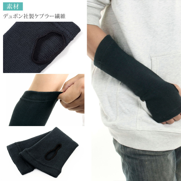●リブ編みされたブラックケブラーは10.0Nの高い切創耐性があります。
