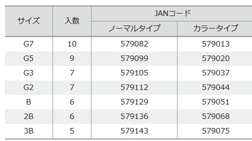 号数別のカラーリングでサイズが一目瞭然のカラータイプ