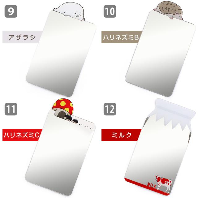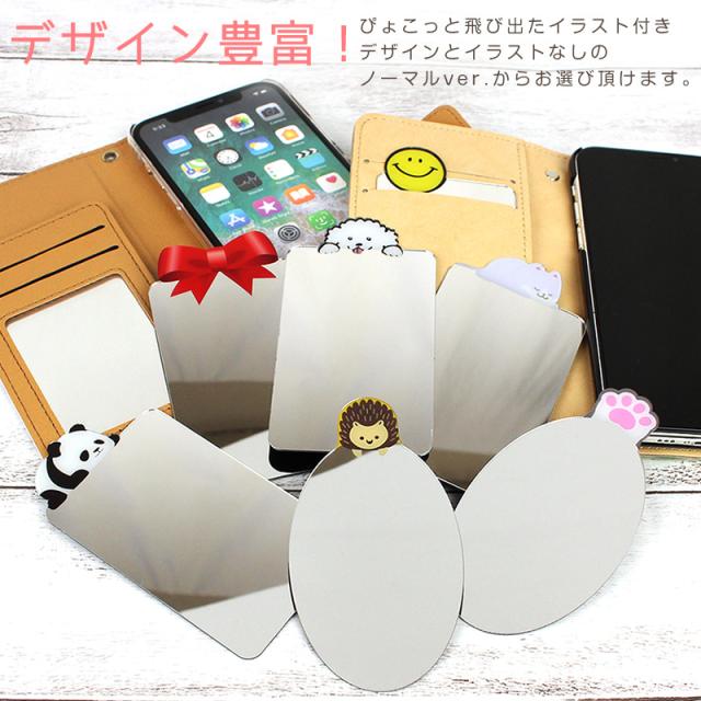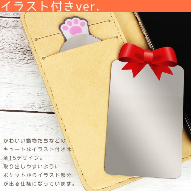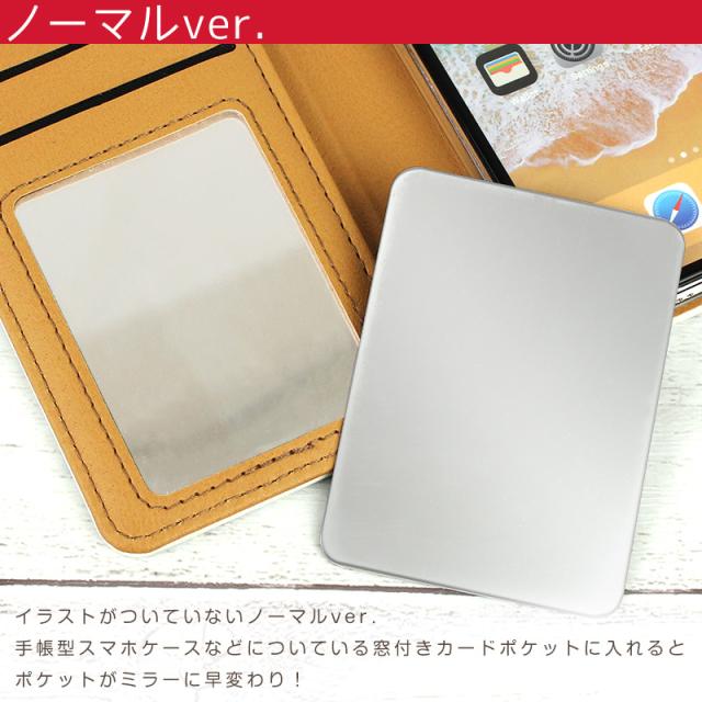 ポケットから取り出しやすいイラスト付きとスマホケースなどの窓付きカードポケットがミラーに早変わりするノーマルver.があります。