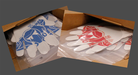 (注) グローブは白ですが手の平のロゴは青、赤、朱、茶、緑、ピンクと微妙な色の違いで各色ございます。