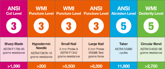 ANSI 5mm針突き刺し試験: レベル4 (EN388) >14,000