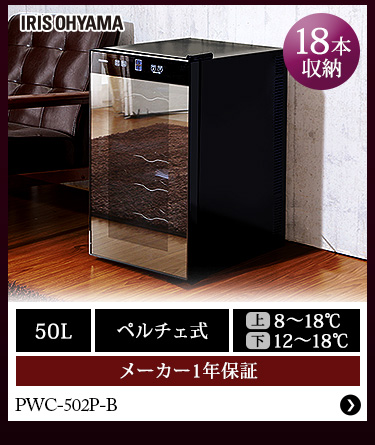 ワインセラー アイリスオーヤマ スリム 18本 ペルチェ冷却方式 家庭用 ワイン セラー ガラス窓 おしゃれ 温度設定 8〜18度 LED庫内灯付き タッチパネル 簡単操作 縦型 ボトル 一升瓶 ワインクーラー PWC-491P-B *