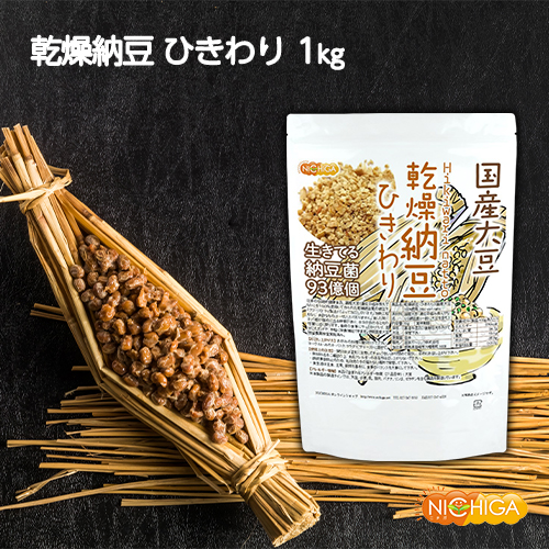 国産納豆(ひきわり) 1kg【送料無料(沖縄を除く)】 国産大豆100%使用 Hiki wari natto 生きている納豆菌93億個・ナットウキナーゼ活性・大豆イソフラボンアグリコン 含有 NICHIGA(ニチガ) TK0