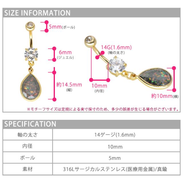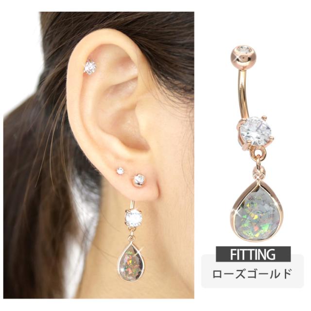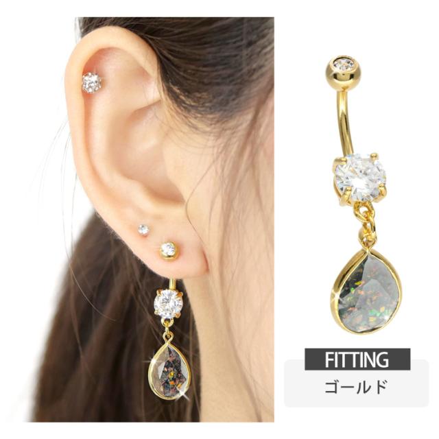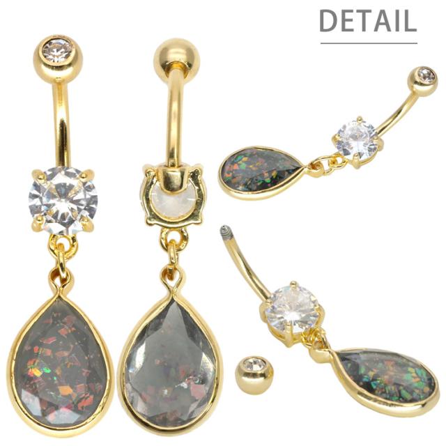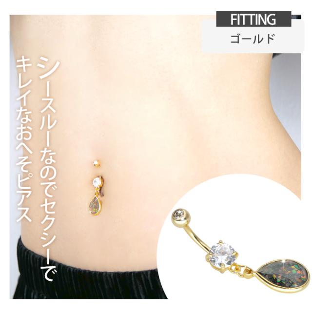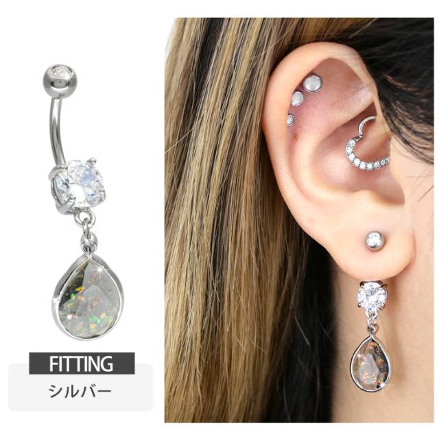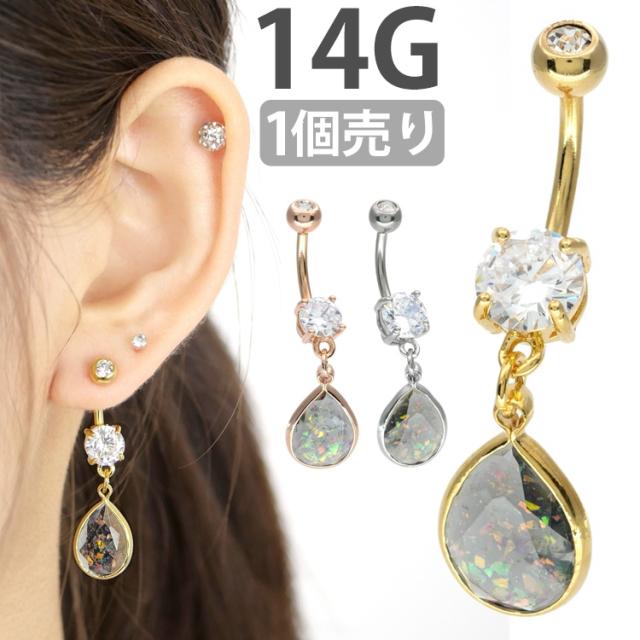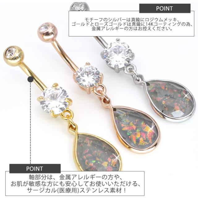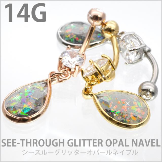 ボディピアス へそピアス 14G シースルーグリッターオパールネイブル ヘソピアス