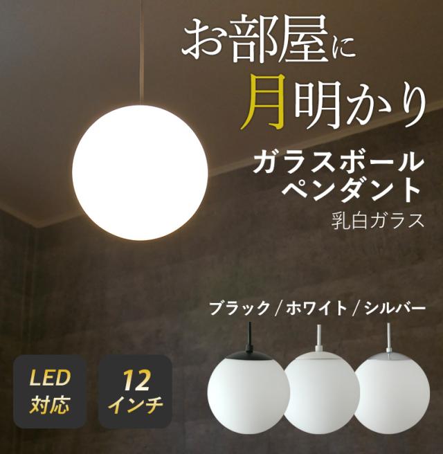【ガラスボールペンダント 12インチ 乳白ガラス】 ※LED電球付き※ (P-0012) ペンダントライト 照明 1灯 おしゃれ 北欧 天井照明 間接照明 吊下げ灯 LED電球対応 リビング ダイニング カフェ インテリア 村上工作所