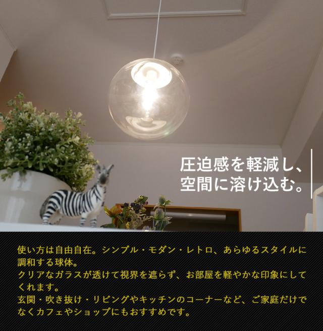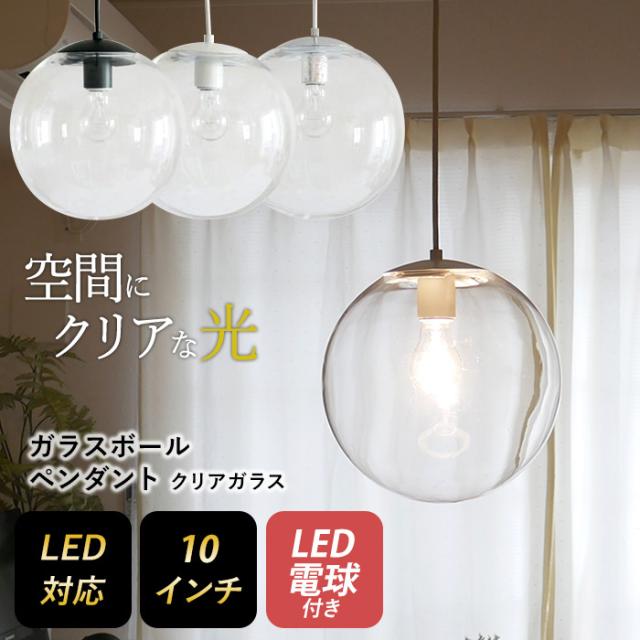 【ガラスボールペンダント 10インチ クリアガラス】 ※LED電球付き※ ペンダントライト 照明 1灯 おしゃれ 北欧 天井照明 間接照明 吊下げ灯 LED電球対応 リビング ダイニング カフェ インテリア 村上工作所