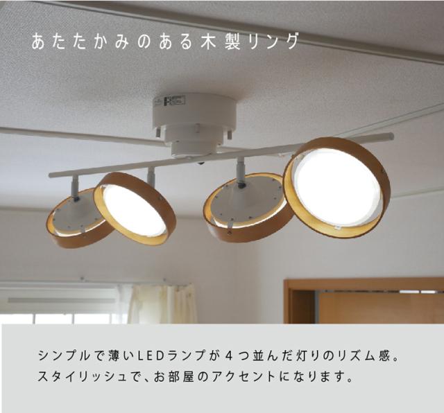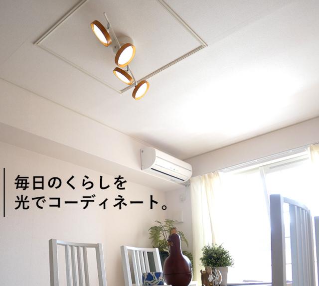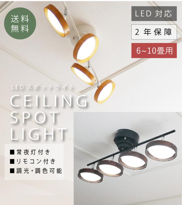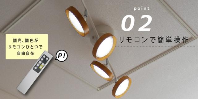 【LEDシーリングスポット 4灯 ストレート ウッドタイプ】 スポットライト 照明 おしゃれ 調光調色 天井照明 常夜灯 6畳 8畳 12畳 リモコン付き 間接照明 リビング ダイニング 村上工作所