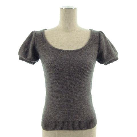 【中古】エフデ ef-de ニット セーター 半袖 リボン ウール混 ラメ入り グレー 9 レディース