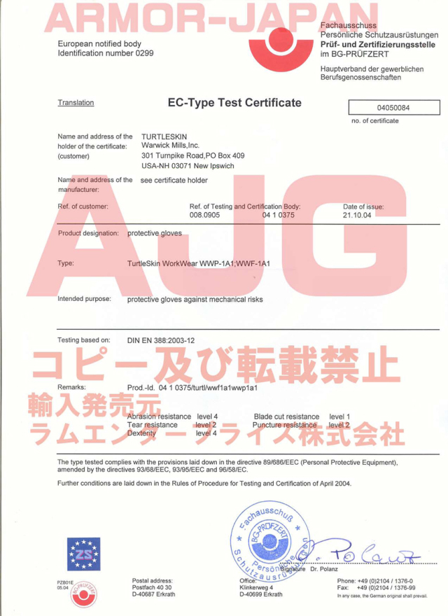 切創力:6.3N (JIS T 8052) 日本化学繊維検査協会