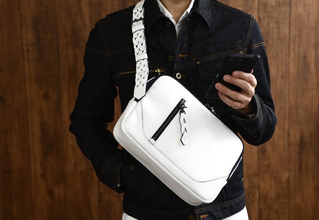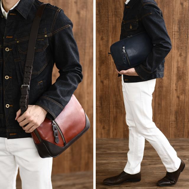 マチが広くて収納便利な本革メンズショルダーバッグ