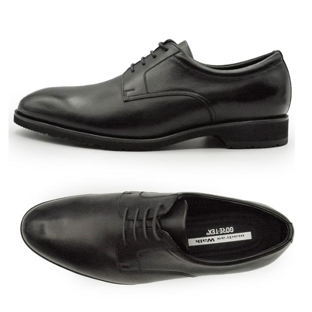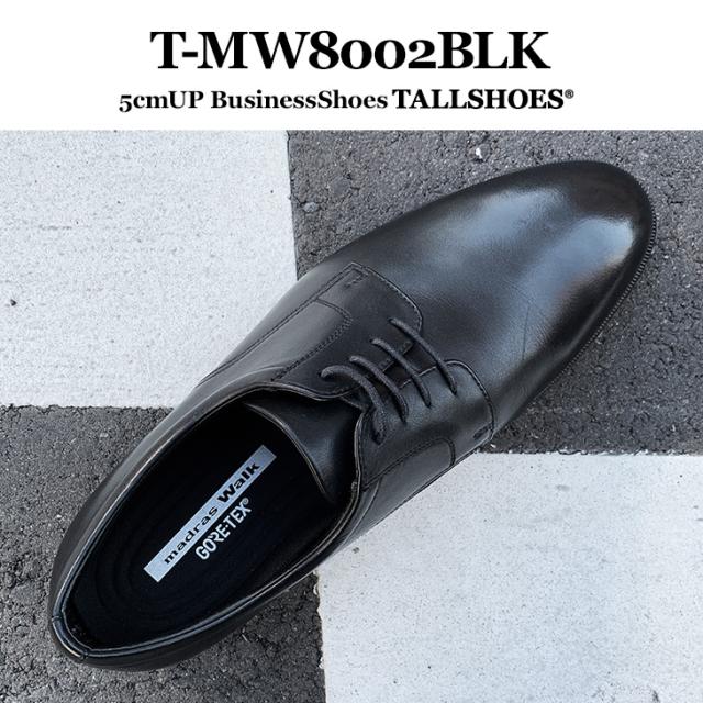 シークレットビジネスシューズ 5cmUP マドラスシューズ 幅広4E ラウンドトゥ プレーントゥ 外羽根 ブラック ゴアテックス 防水 mw8002