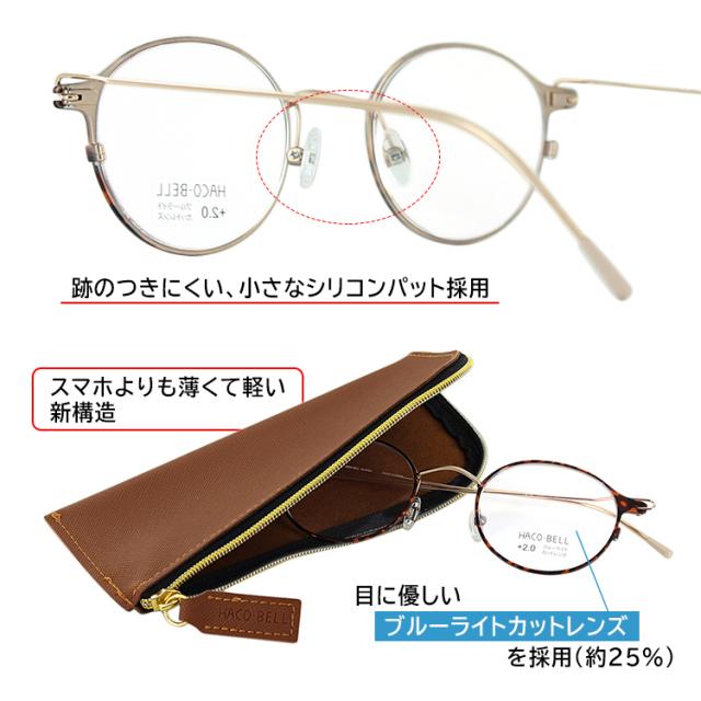 | ハコベル/HACO-BELL HB-02 持ち運びに便利なリーディンググラス。 スマホより薄くて軽い新機構。跡のつきにくい小さなパット使用。 目に優しいブルーライトカットレンズ採用。 度数:+1.00、+1.50、+2.00、+2.50 | |