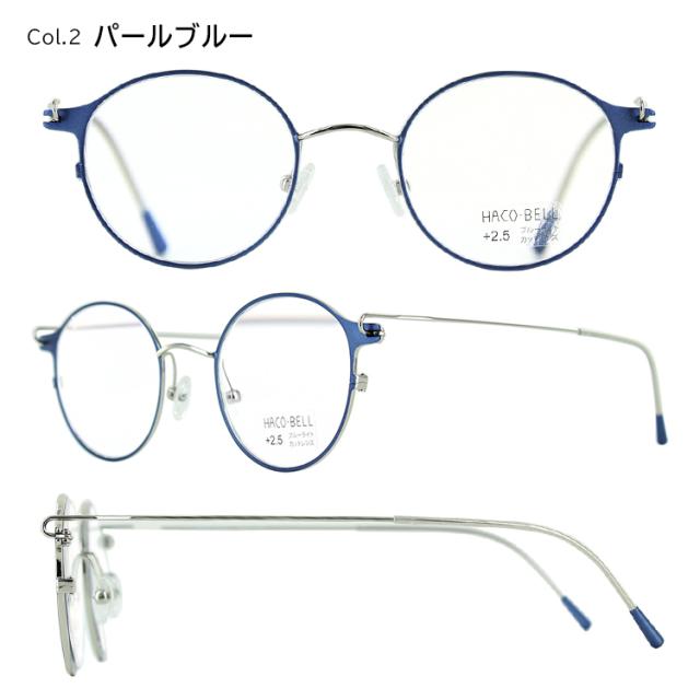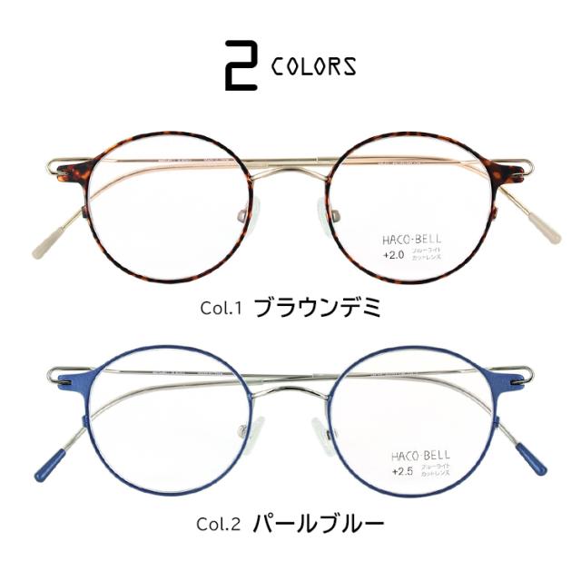 | ●フレームカラー Col.1 ブラウンデミ Col.2 パールブルー ●レンズカラー(全色共通) クリア | ●素材 フレーム:ステンレス/合金 テンプル:ステンレス/合金 レンズ:プラスチック ●度数 +1.00、+1.50、+2.00、+2.50の4度数展開 |