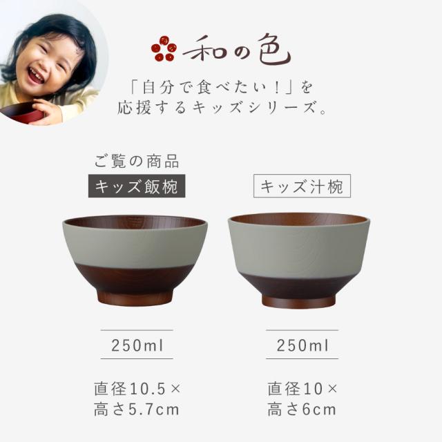 お子様の「自分で食べたい!」を応援する、日本製キッズ用飯椀。一般的な大人用の飯椀と比べると小さめで、お子様にも持ちやすいサイズ感です。