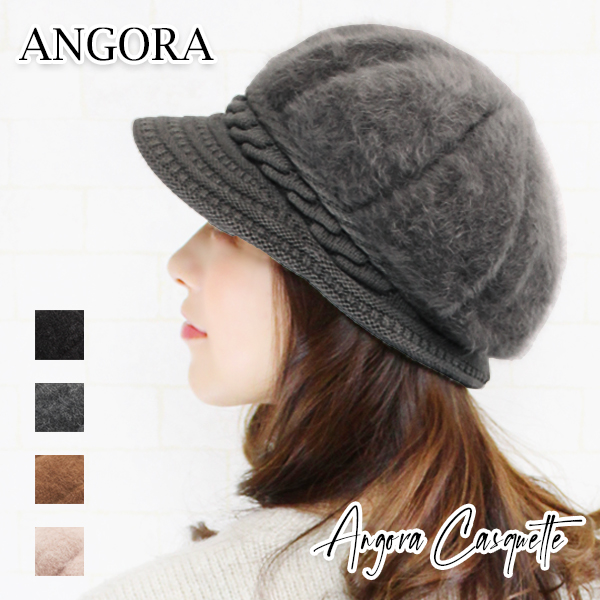 【キャスケット レディース 秋冬】あったか メール便送料無料 キャップ つば付き 帽子 冬用 アンゴラ 防寒 ふわふわ 深め ニット帽 厚手 暖かい 温かい あたたか シャギー モヘア おしゃれ 可愛い かわいい 女性 シンプル ミセス プレゼント【Angora Casquette】