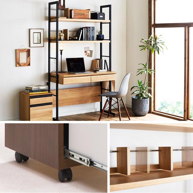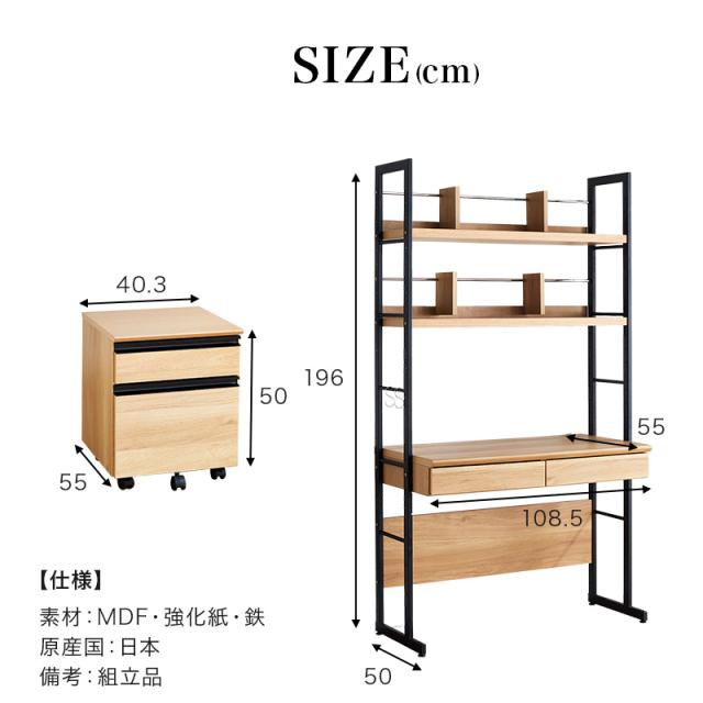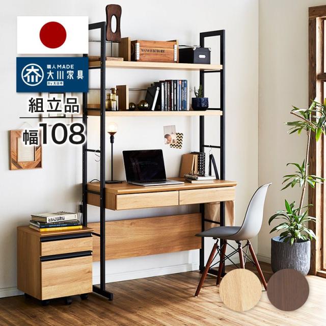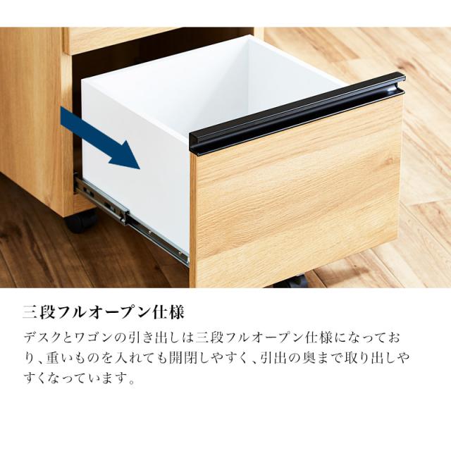 高さを調節できる デスク 110cm おしゃれ 収納 デスクワゴンセット 奥行55cm 大川家具 国産 学習デスク パソコンデスク(代引不可)【送料