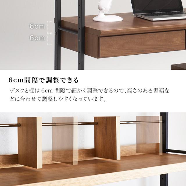 ・サイドからのジョイント構造により、天板や棚の高さを6cmピッチで変えることができるため使いやすい高さに調節ができます。