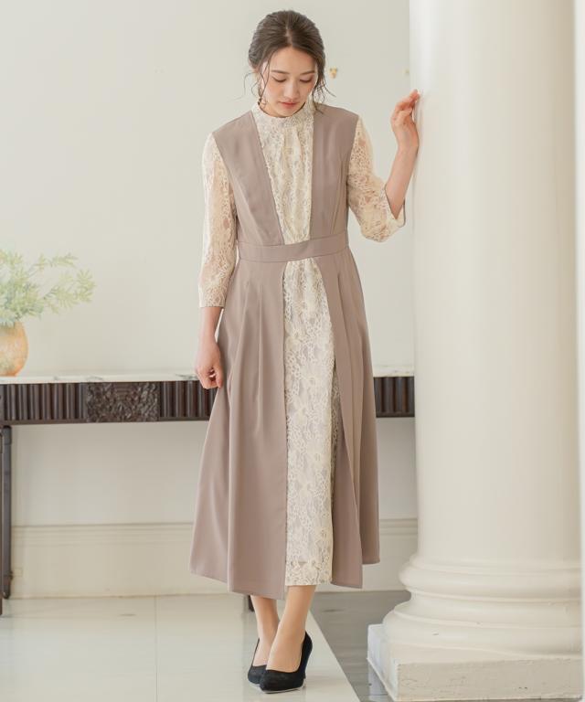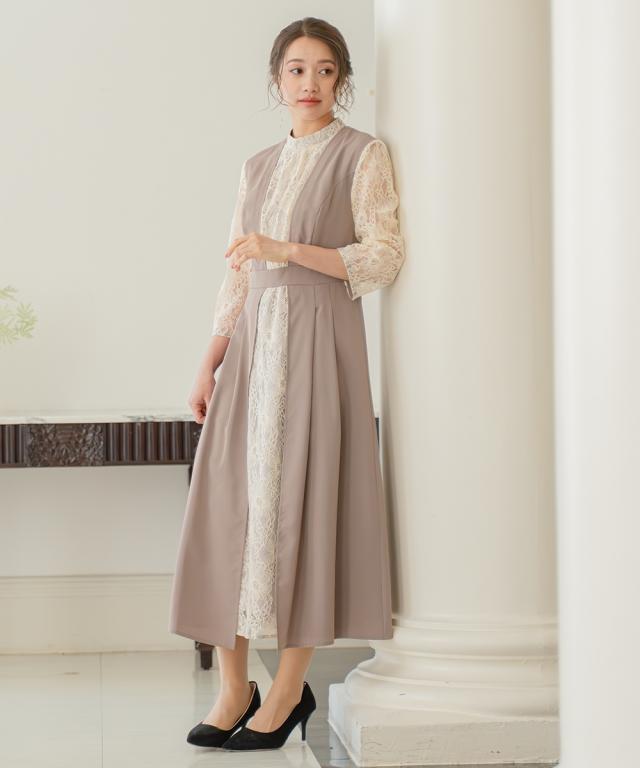 品質=[表側]ポリエステル100%(合繊無地)[別布]ナイロン70%・レーヨン20%・綿5%・その他5%(レース)[裏側]ポリエステル100% 【裏地】有(身頃部) 後スナップボタン開・後ファスナー開・ウエスト後ゴム入 レース柄の出方が多少異なる場合があります。 繊細なレースを使用しているため、引っかかりなどにご注意ください。※注意コメントデザインによりサイズ感が異なりますので、詳しい仕立てサイズ表をご確認ください。お客様のパソコン・スマホのモニターや照明等により、実際のお色と多少異なるように感じられる場合がございます。ご了承くださいませ。 原産国:中国製 洗濯表示:ドライクリーニング