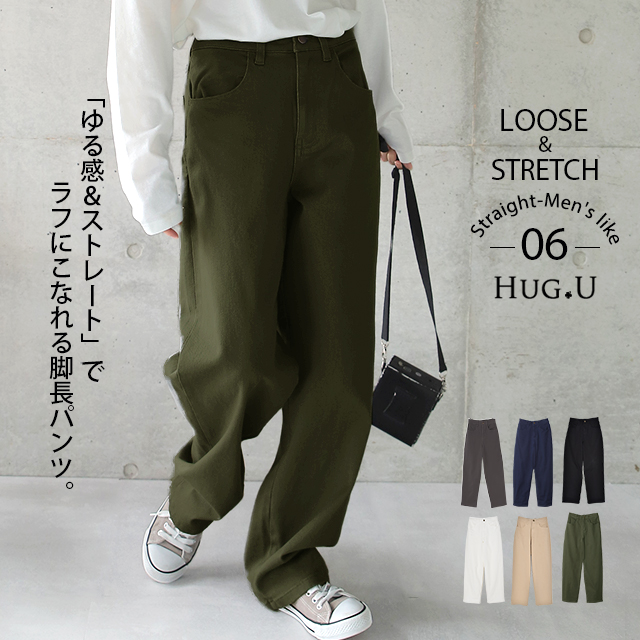 パンツ 「 ルーズなゆる感 」 ストレッチ 一部12月上旬入荷 ストレートパンツ チノパン ワイドパンツ ワイド ボトムス レディース ロング カーゴ チノ チノパンツ カーゴパンツ 大きいサイズ ブラウン ゆったり ストレート 綿 ボーイフレンド 黒 白 冬 秋 HUG.U 秋新作