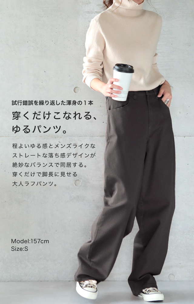 体型が気にならないシルエットとストレスフリーな穿き心地です。